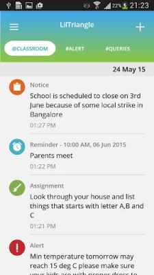 - Worried about how your kid is coping up with the temperature he had last night? Check with the teacher, using our in-app MESSAGE feature.