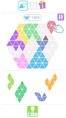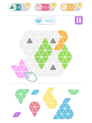 The concept of the game is very simple. An empty shape appears on the screen. Triangle blocks are available at the bottom of the screen. You need to place these triangle blocks in the empty shape and make sure the final shape is perfectly filled with all the blocks you moved. Hundreds of levels await you for hours of guaranteed fun.